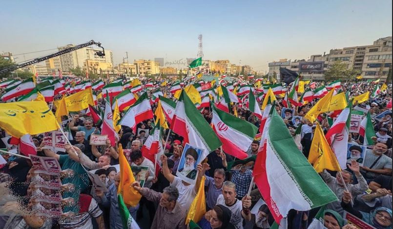 സയണിസ്റ്റ് ആക്രമണങ്ങളിൽ നിന്ന് രാജ്യത്തെ പ്രതിരോധിച്ചതിന് ഇറാന്റെ സായുധ സേനയെ പ്രശംസിക്കാൻ ആയിരക്കണക്കിന് ആളുകൾ ടെഹ്റാനിലെ ഇങ്കിലാബ് സ്ക്വയറിൽ ഒത്തുകൂടി. ഇറാൻ പ്രസിഡണ്ടിനേയും ചെറുത്തുനിൽപ്പിനെയും പിന്തുണച്ച് പതാകകൾ, രക്തസാക്ഷികളുടെ ഛായാചിത്രങ്ങൾ എന്നിവ ഉയർത്തിപ്പിടിച്ച് ആയിരങ്ങൾ രാജ്യത്തിന് പിന്തുണയർപ്പിച്ചുകൊണ്ട് ഉരുവിട്ട ഐക്യത്തിന്റെ മന്ത്രങ്ങൾ അന്തരീക്ഷത്തിൽ നിറഞ്ഞു.