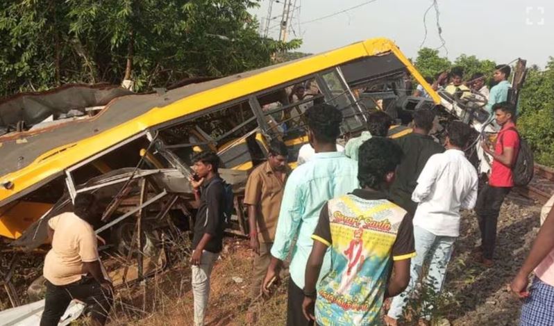കടലൂരിലെ റെയിൽവേ ഗേറ്റിലൂടെയാണ് സ്വകാര്യ സ്കൂൾ ബസ് പതിവായി കടന്നു പോകുന്നത്. രാവിലെ ബസ് എത്തിയപ്പോൾ ഗേറ്റ് അടഞ്ഞു കിടക്കുകയായിരുന്നു. ആറ് കുട്ടികളും ഡ്രൈവറുമാണ് വാഹനത്തിലുണ്ടായിരുന്നത്. വില്ലുപുരം–മയിലാടുതുറൈ പാസഞ്ചർ ട്രെയിൻ താമസിക്കുമെന്നായിരുന്നു അറിയിപ്പ്. ഇതോടെ ഗേറ്റ് തുറക്കാൻ ഡ്രൈവർ ജീവനക്കാരനെ നിർബന്ധിച്ചതായാണ് റെയിൽവേ അധികൃതർ പറയുന്നത്. ഗേറ്റ് തുറന്ന് ബസ് കടന്നു പോകുമ്പോഴായിരുന്നു അപകടം. റെയിൽവേ ഗേറ്റ് കടന്നു പോകാൻ ആ സമയം സ്കൂൾ ബസ് മാത്രമേ ഉണ്ടായിരുന്നുള്ളൂ. തൊട്ടടുത്ത് വളവായതിനാൽ ട്രെയിൻ വരുന്നത് ഡ്രൈവർ കണ്ടില്ല.