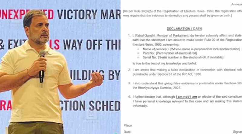 ന്യൂഡൽഹി: കർണാടകയിലെ വോട്ടർപട്ടികയിലെ ക്രമക്കേട് ആരോപണങ്ങളിൽ സത്യവാങ്മൂലം സമർപ്പിക്കാൻ ലോക്സഭാ പ്രതിപക്ഷ നേതാവ് രാഹുൽ ഗാന്ധിയോട് ആവശ്യപ്പെട്ട് തിരഞ്ഞെടുപ്പ് കമ്മിഷൻ. കർണാടകയിലെ മുഖ്യ തിരഞ്ഞെടുപ്പ് ഓഫിസർ രാഹുലിന്