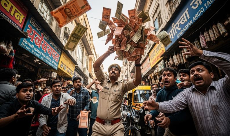 വിജിലൻസ് സംഘം ഒരു കെണിയൊരുക്കി. അദൃശ്യമായ പൊടി പുരട്ടിയ 15,000 രൂപയുടെ നോട്ടുകൾ പരാതിക്കാരന് നൽകി. നിശ്ചയിച്ച സമയത്ത് പരാതിക്കാരൻ പൊലീസ് സ്റ്റേഷന് പുറത്ത് രാകേഷ് കുമാറിനെ കാണുകയും പണം കൈമാറുകയും ചെയ്തു. പരാതിക്കാരനിൽ നിന്ന് സിഗ്നൽ ലഭിച്ചതിനെത്തുടർന്ന് വിജിലൻസ് സംഘം അദ്ദേഹത്തെ പിടികൂടാൻ ഓടി. പക്ഷേ റെയ്ഡ് മനസ്സിലാക്കിയ എഎസ്ഐ കറൻസികൾ വായുവിലേക്ക് വലിച്ചെറിഞ്ഞു. സംഭവസ്ഥലത്തെ തിരക്കുമൂലം നിലത്ത് വീണ നോട്ടുകൾ പലരും കൈക്കലാക്കി. ആകെ തുകയിൽ 10,000 രൂപ സംഭവസ്ഥലത്ത് നിന്ന് കണ്ടെടുത്തു. എന്നാൽ 5,000 രൂപ കണ്ടെത്താനായില്ല. കേസ് റജിസ്റ്റർ ചെയ്ത് കുമാറിനെ അറസ്റ്റ് ചെയ്തതായി വിജിലൻസ് ഉദ്യോഗസ്ഥർ പറഞ്ഞു. (ചിത്രം: എഐ നിർമ്മിച്ചത്)