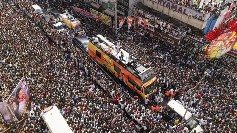 ചെന്നൈ: വിജയ് നയിച്ച തമിഴക വെട്രി കഴകത്തിന്റെ (ടിവികെ) റാലിയിൽ തിക്കിലും തിരക്കിലുംപെട്ട് 39 പേർ മരിച്ചു. ഇതിൽ ആറ് കുട്ടികളും ഉൾപ്പെടും. പരിക്കേറ്റ ആയിരത്തിലധികം പേരെ