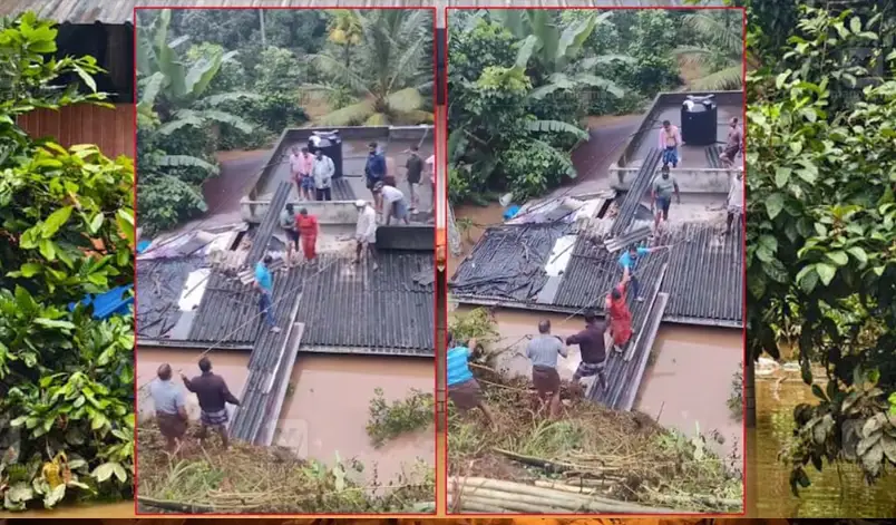 രക്ഷിതാക്കൾ ബെഞ്ചിന്റെ മുകളിലും കുട്ടി ഫാനിൽ തൂങ്ങി നിൽക്കുന്ന രീതിയിലുമാണ് കണ്ടത്. തുടർന്ന് ഞാനും ഒപ്പമുള്ളവരും നീന്തി അവിടെയെത്തി. മുറിയുടെ എയർഹോൾ ഭാഗം പൊളിച്ച് അകത്ത് കടന്നു. മൂവരെയും കയർ കെട്ടി വീടിനു പുറത്തെത്തിച്ച് ടെറസിലേക്ക് കയറ്റി. അപ്പോഴും വെള്ളം ഉയരുന്ന സാഹചര്യമായിരുന്നു പ്രദേശത്ത്. ടെറസിൽ നിന്ന് റോഡിലേക്ക് ആസ്ബറ്റോസ് ഷീറ്റ് ഉപയോഗിച്ച് പാലം നിർമിച്ചു. അതിലെ കുടുംബാംഗങ്ങളെ റോഡിലേക്കെത്തിച്ചാണ് രക്ഷപ്പെടുത്തിയത്’. പ്രദേശത്തെ വീടുകളിൽ കുടുങ്ങിയവരെ രാവിലെ മുതൽ സ്ഥലത്തെത്തിയ നാട്ടുകാരാണ് രക്ഷപ്പെടുത്തിയത്. (മനോരമ)