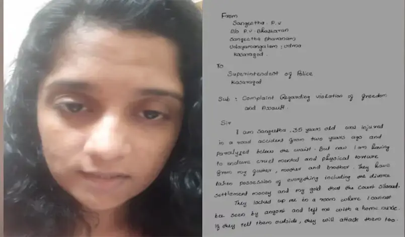 അരയ്ക്ക് താഴെ തളർന്ന തന്റെ സ്വത്ത് തട്ടിയെടുത്ത് കുടുംബം തന്നെ ആത്മഹത്യക്ക് പ്രേരിപ്പിക്കുന്നുവെന്നും ഇതര മതസ്ഥനായ യുവാവിനെ വിവാഹം കഴിക്കണമെന്ന് അറിയിച്ചതോടെയാണ് വീട്ടിൽ പൂട്ടിയിട്ടതെന്നും പുറത്ത് വിട്ട വിഡിയോയിൽ സംഗീത പറയുന്നു.