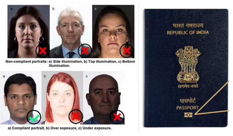 ∙ ഇന്റർനാഷനൽ സിവിൽ എവിയേഷൻ ഓർഗനൈസേഷൻ (ICAO) മാനദണ്ഡമനുസരിച്ചുള്ള ഫൊട്ടോഗ്രഫ് ആണ് വേണ്ടത്. പാസ്പോർട്ട് സേവ കേന്ദ്രത്തിൽ നൽകുമ്പോഴും  ICAO പ്രകാരമുള്ള ഫൊട്ടോഗ്രഫിന്റെ കളർ സോഫ്റ്റ് കോപ്പിയാണ് നൽകേണ്ടത്.