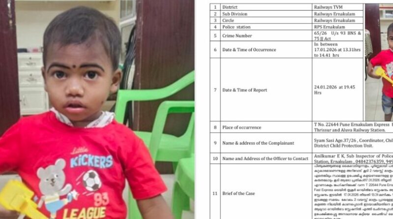 പൂനെ-എറണാകുളം എക്സ്പ്രസിൽ രണ്ട് വയസുകാരനെ ഉപേക്ഷിച്ച സംഭവം; കുട്ടിയെ ചൈൽഡ് ലൈൻ ഏറ്റെടുത്തു