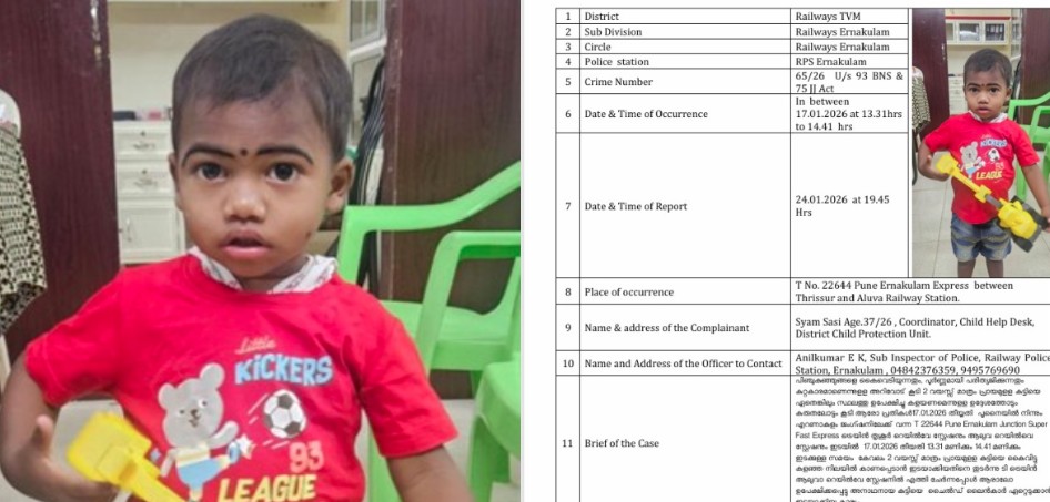 പൂനെ-എറണാകുളം എക്സ്പ്രസിൽ രണ്ട് വയസുകാരനെ ഉപേക്ഷിച്ച സംഭവം; കുട്ടിയെ ചൈൽഡ് ലൈൻ ഏറ്റെടുത്തു